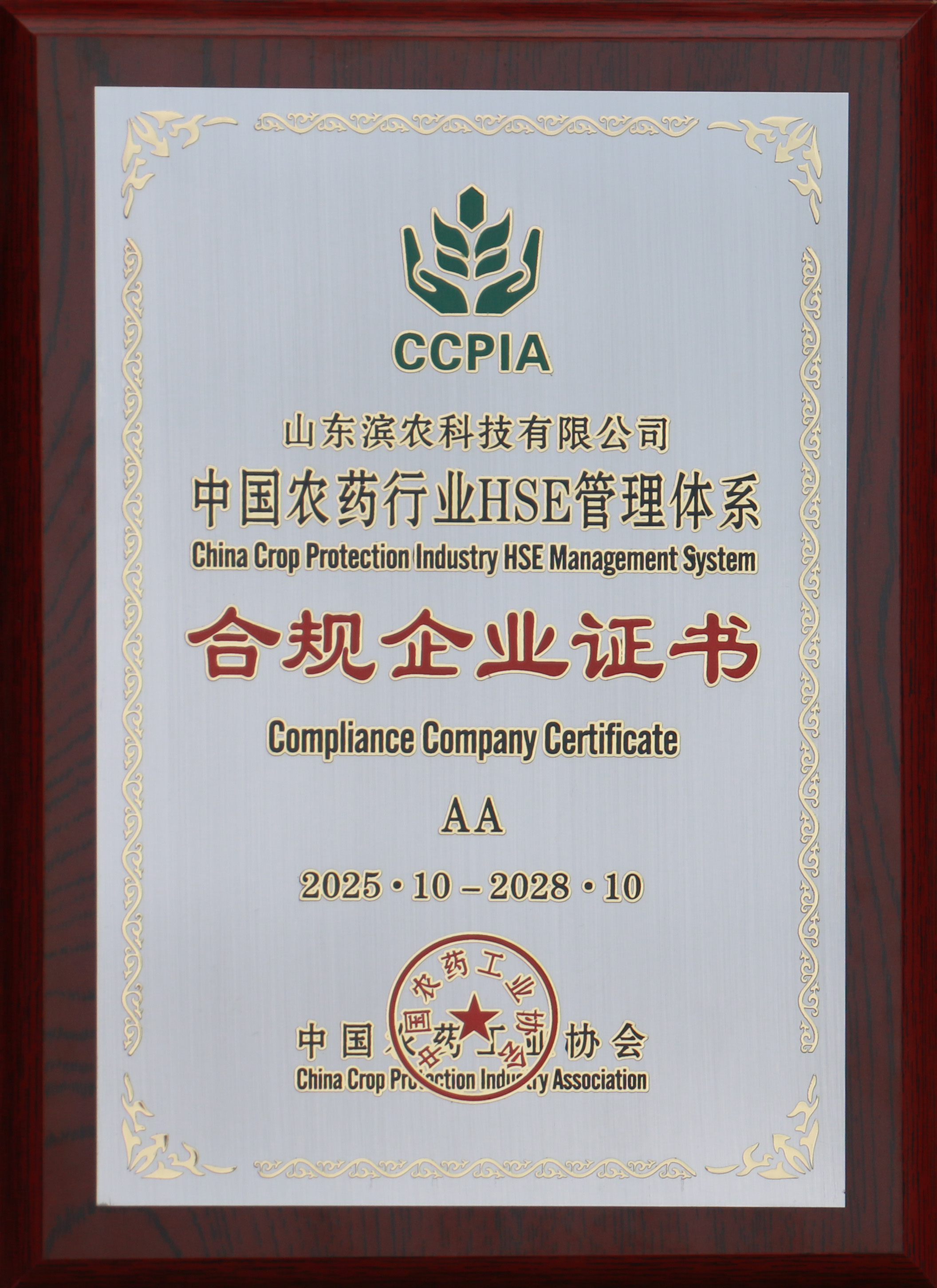 ■2025-11-13 濱農(nóng)科技取得中國農(nóng)藥行業(yè)HSE管理體系合規(guī)企業(yè)AA級認證