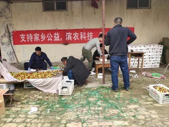 目前沾化冬棗市場的整體局面,不得不說著實令人堪憂。在早期,沾化冬棗占據(jù)了大半市場,評價很高,而如今市場越來越小,這不是一時的結(jié)果,而是在日積月累中磨滅了客戶的信任,家家都只想著以最快的速度、最高的價格把當年的冬棗賣出去,只看重短期利益,沒有真正地從長遠考慮。以至于出現(xiàn)多種不良現(xiàn)象: 1.客戶憑信任網(wǎng)購冬棗,收到貨發(fā)現(xiàn)個頭大質(zhì)量好的冬棗僅在上層,下層凈是小號棗子,上下不一致;包括我們在采購冬棗過程中,數(shù)量緊缺的時候,也收到過此類“特別建議”,但被一口回絕了。2.客戶包園子收購冬棗,當天看得好好的,第二天去摘的時候就只剩下小棗了,大棗已經(jīng)被棗農(nóng)連夜摘走了。3.客戶收購冷庫棗,看的時候大多是高質(zhì)量的冬棗,可是拉回當?shù)睾髤s發(fā)現(xiàn)摻雜了很多裂棗、青棗、小棗,只能低價處理,客戶只得自己承擔這損失?;ㄥX買教訓,不僅自己不會再回購,還會告訴朋友們沾化冬棗摻假的現(xiàn)象,一傳十,十傳百,久而久之,后果不堪設(shè)想。 4.明明是沾化冬棗,卻要打著其他地區(qū)冬棗的幌子出售?;蛟S是棗農(nóng)對于沾化冬棗品牌自信的缺失,亦或許是隨大流,人云亦云吧。 在了解整體情況后,我們也盡可能地去監(jiān)督彌補這些不足。行動之前首先總結(jié)了整個工作流程, 以及采購過程中注意把控冬棗品質(zhì)、封箱包裝等要點,接著帶上定制的小卡片和條幅,按照原先劃分的五個小組,在各組長帶領(lǐng)下,車隊出發(fā)了!五個小組,五個不同的村子,一天五家不同的農(nóng)戶,始終堅持的卻是共同的冬棗選擇標準:濱農(nóng)標準。那何為濱農(nóng)標準? 1.選棗品先看人品,與棗農(nóng)簽訂承諾書,明確棗農(nóng)責任,誠信買賣,夯實基礎(chǔ)工作。2.選棗嚴格把控,主要看口感、脆甜度、皮薄,點紅片紅為主,大量青棗、全紅不要。3.裝箱,細心篩選保質(zhì)量,無殘果、裂果、縮果,在案板上一顆顆的選。4.稱重分量足,不缺斤少兩,見到漏掉的不合格棗子要拿掉。5.封箱包裝要美觀,膠帶纏繞方式正確,運輸過程無破損。6.追溯到人,追蹤到戶。對于自己所找的棗子和農(nóng)戶,業(yè)務員需要負責到底,為了識別消費者認可度高的冬棗,我們專門定制了小卡片,每個箱子上都有棗農(nóng)特定的編號,都是可追溯的。