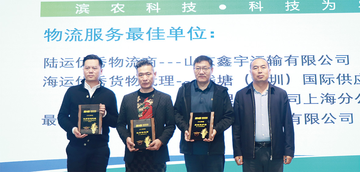 會上,物流部主任謝云東誠摯歡迎承運商參會,并感謝長期以來對公司的支持。物流部主管詳細匯總并分析了陸運運輸過程中出現(xiàn)的各類問題,并提出了相應(yīng)的解決方案,同時對下一步運輸提出了更高要求。海運訂艙專員介紹了對海運工作具體情況,對比分析了出口數(shù)據(jù),對各合作貨運代理進行了評價并提出了針對性要求。謝主任從濱農(nóng)的生產(chǎn)經(jīng)營情況、物流主要工作、存在的問題及改進措施、下一步工作計劃等四個方面進行了全面解讀,圍繞運輸效率提升、成本控制、服務(wù)質(zhì)量優(yōu)化等多個方面提出了具體要求,為后續(xù)合作明確了方向;此外,依據(jù)承運商年度合作評價標準對所有物流商進行了評分展示,最終,山東鑫宇運輸有限公司榮獲“陸運優(yōu)秀物流商”,錢塘(深圳)國際供應(yīng)鏈管理有限公司上海分公司榮獲“海運優(yōu)秀貨物代理”,山東華業(yè)物流有限公司獲評“最佳進步物流商”。業(yè)務(wù)跟單服務(wù)部經(jīng)理張倩結(jié)合當前國際形勢對出口業(yè)務(wù)的影響,對貨運代理提出了專業(yè)詳細要求,以確保貨物安全高效出運。最后,副總經(jīng)理郭安勇深刻剖析了宏觀經(jīng)濟形勢及行業(yè)競爭態(tài)勢,結(jié)合濱農(nóng)“雙百目標”,與承運商展望合作前景,明確責任與義務(wù),共同追求服務(wù)質(zhì)量的提升。