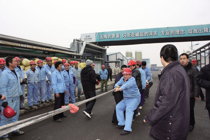 2010年 2月7日上午,二分廠懸浮劑車間舉辦了2010年第一屆車間趣味運(yùn)動(dòng)會(huì),二分廠廠長(zhǎng)鄭軍做了賽前講話。比賽分為三個(gè)環(huán)節(jié):第一項(xiàng)拔河比賽,體現(xiàn)團(tuán)隊(duì)精神。第二項(xiàng)綁腿跑比賽,體現(xiàn)協(xié)作能力和技巧。第三項(xiàng)滾大桶比賽,考驗(yàn)賽手掌握技巧能力。比賽競(jìng)爭(zhēng)激烈,各選手備戰(zhàn)十足。拔河比賽最終由牟俊龍、王朋會(huì)、呂清華、聶國(guó)俊、劉亞臣、孫大慶、孟祥輝、劉衛(wèi)東、付志樂(lè)、王汝江十名員工奪冠;綁腿跑比賽由趙洪泉、李樹泉;李偉松、崔連友;王汝江、薛呈濱三組員工榮獲前三;滾大桶比賽中,陳會(huì)永、宋建永、周洪星三人脫穎而出。