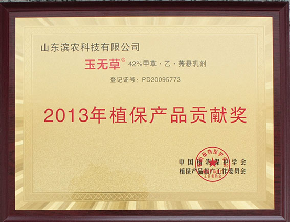 我公司產(chǎn)品“玉無草”榮獲“2013年植保產(chǎn)品貢獻獎”