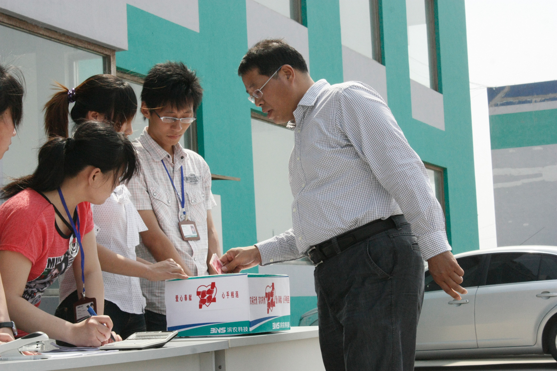 據(jù)了解,張冠誠今年47歲,家住濱州堡集,是我公司敬崗愛業(yè)的老員工。其家庭情況非常困難:父親常年有病,靠藥物維持治療;在2010年的一場(chǎng)車禍中,兒子骨折,兒媳去世,巨大的醫(yī)療開支難以為繼;禍不單行,張冠誠又確診身患急性白血病,給這個(gè)貧困的家庭雪上加霜。公司獲知這個(gè)情況后,立即行動(dòng)起來,6月4日下午,黨總支、工會(huì)、企業(yè)文化部、人力資源部聯(lián)合組織了“我們?cè)谝黄�,愛心拯救生�?rdquo;的集體募捐活動(dòng)。全體中高層干部齊聚辦公樓前參加募捐活動(dòng),公司董事長(zhǎng)黃延昌、工會(huì)主席李華率先捐款,科室員工也紛紛走到捐款箱前,獻(xiàn)出一份愛心。各分廠車間也陸續(xù)將車間員工捐助的愛心款匯集到人力資源部。活動(dòng)結(jié)束后,共1150名同事累計(jì)捐款48693元。同時(shí)公司工會(huì)也拿出10000元專項(xiàng)救助款,用于馳援張冠誠抗擊病魔。